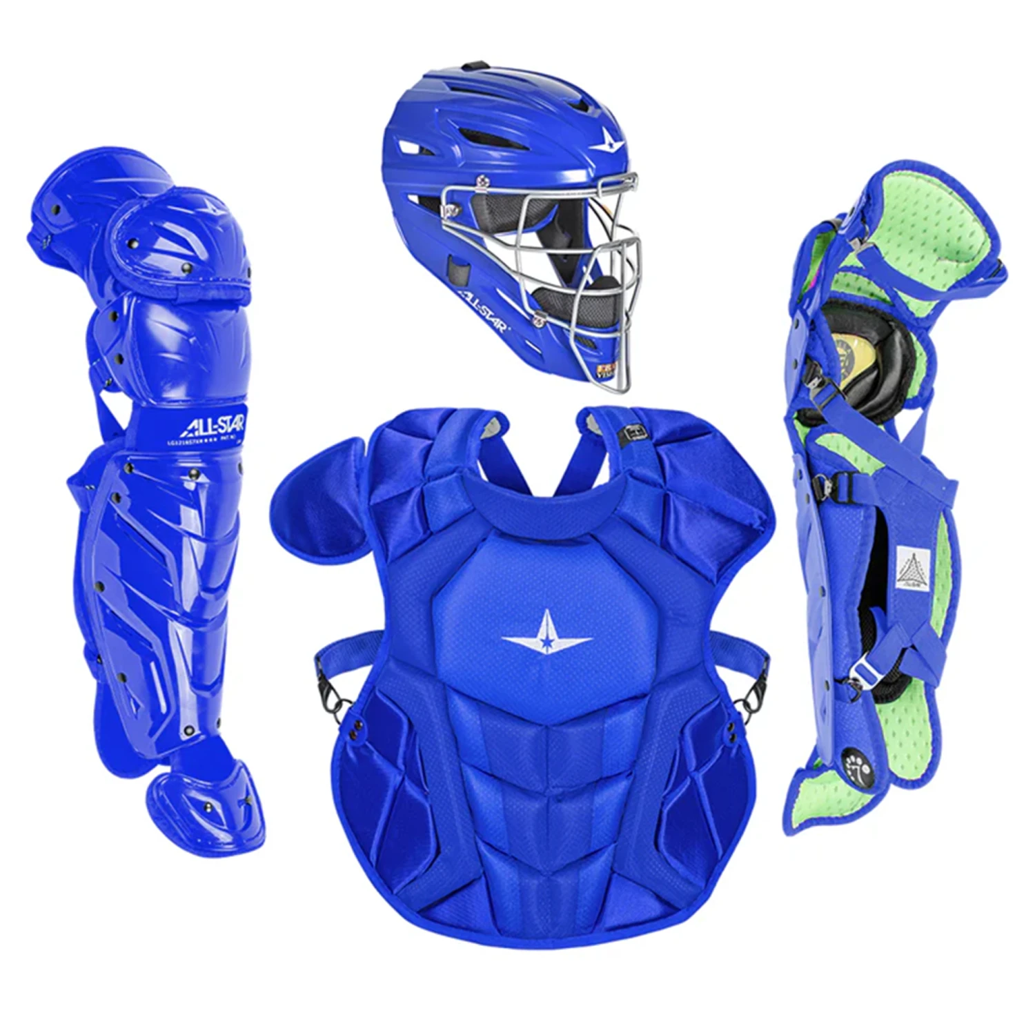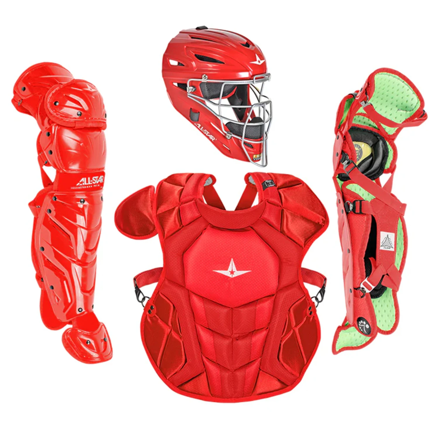 You can’t top the brand new update All-Star has given their System7 Axis catcher’s kit. Baseball has stepped up in a big way with the NOCSAE standard, which will protect players of all ages from Commotio Cordis, a rare but extremely dangerous condition that ultimately results in cardiac arrest. Every new piece of equipment made for catcher’s will have to meet the SEI certification and NOCSAE standard, no matter what. All-Star has once again proven why they are the best in the universe when it comes to catcher’s gear, with this all-new All-Star S& Axis Elite Intermediate Catcher’s Kit leading the way. Made for ages 12 to 16, this kit comes with All-Star’s top of the line pieces: the MVP two-tone helmet and the S7 Axis chest protector and leg guards. Each piece has been designed to be an absolute fortress against any pitch throw a catcher’s way, while still offering the best mobility possible in blocking, throwing and running. But let’s not overlook All-Star’s style. Bringing back a few of the fan favorites and introducing a few new designs, the All-Star S7 Axis Elite 12-16 Intermediate Catcher’s Kit has raised the bar in performance, protection and style.