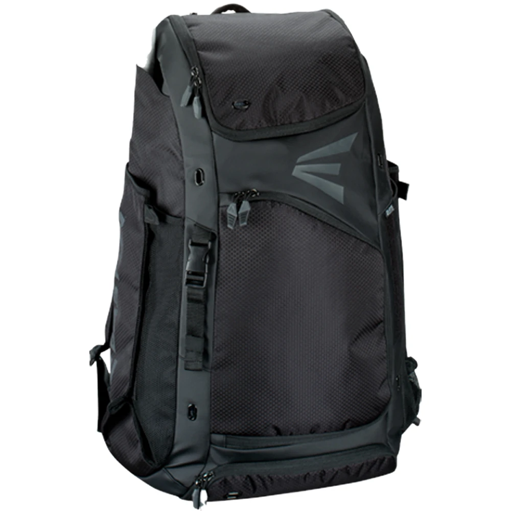 Hey catchers, no need to feel left out anymore! There is now a backpack that will fit all your gear and then some. The Easton 610 Catcher’s Backpack is changing the game in catcher’s bags. The Sport Utility 2.0 design features a fence hook, and custom dual zipper pulls. The main compartment is vented for catcher’s gear and other equipment. There is also a separate vented cleat compartment. The bat sleeves on the sides are fully lined to protect your boom sticks. But here is where it gets good. There are mesh sleeves on the sides for your leg guards. The external strap and buckle are for attaching a helmet or ball glove. This is the bag of bags if you’re a catcher.